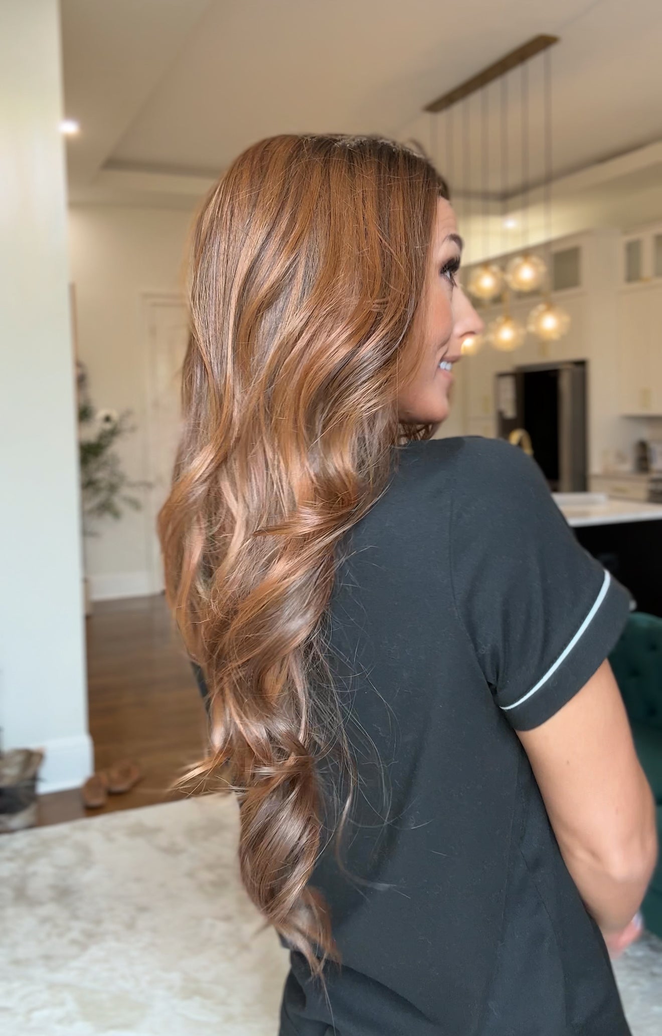 Salon Ready: Volume added, invisible layers, curtain bangs, heat combed.