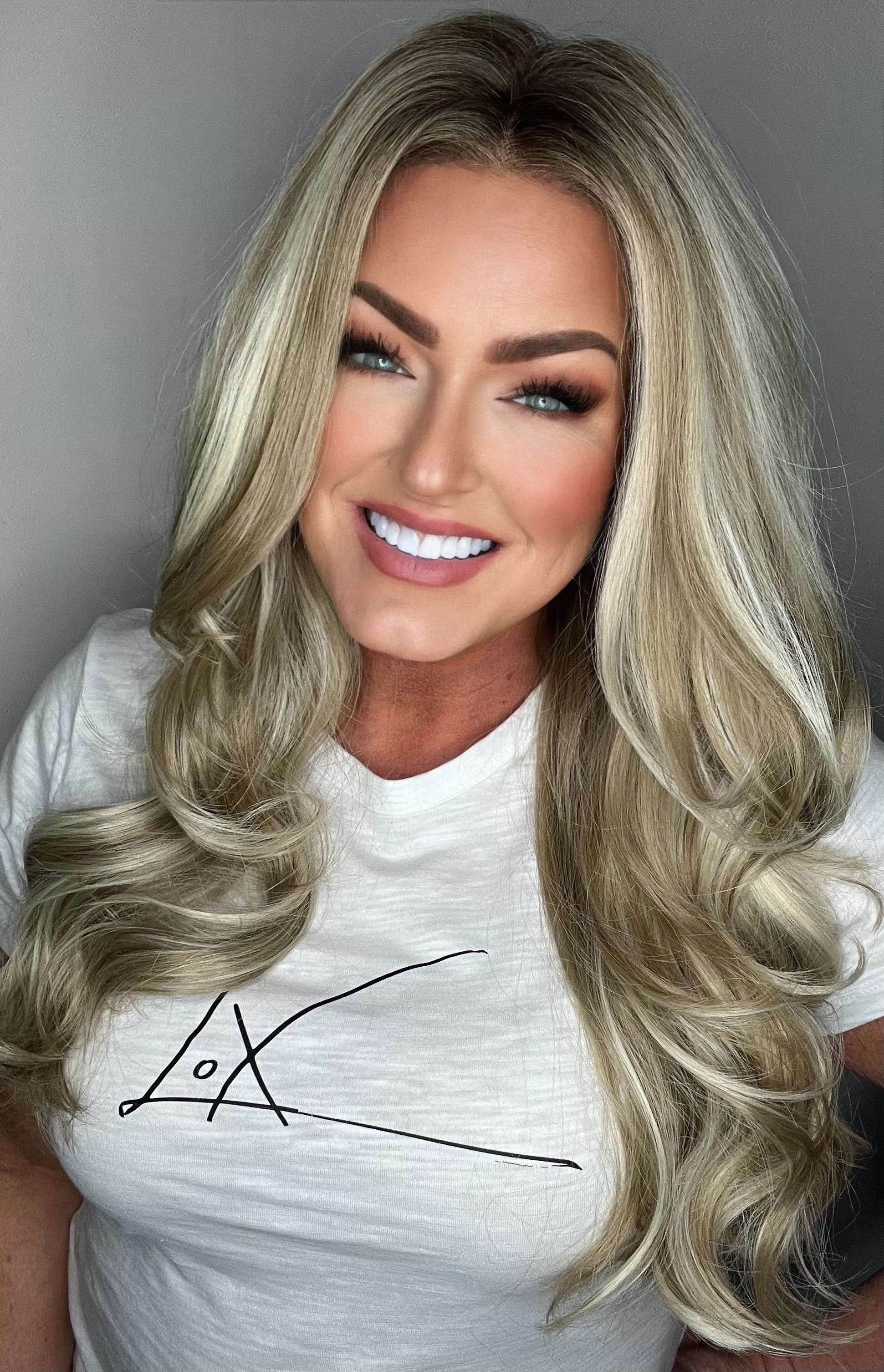Level 8 root, lowlights with platinum blonde highlights
