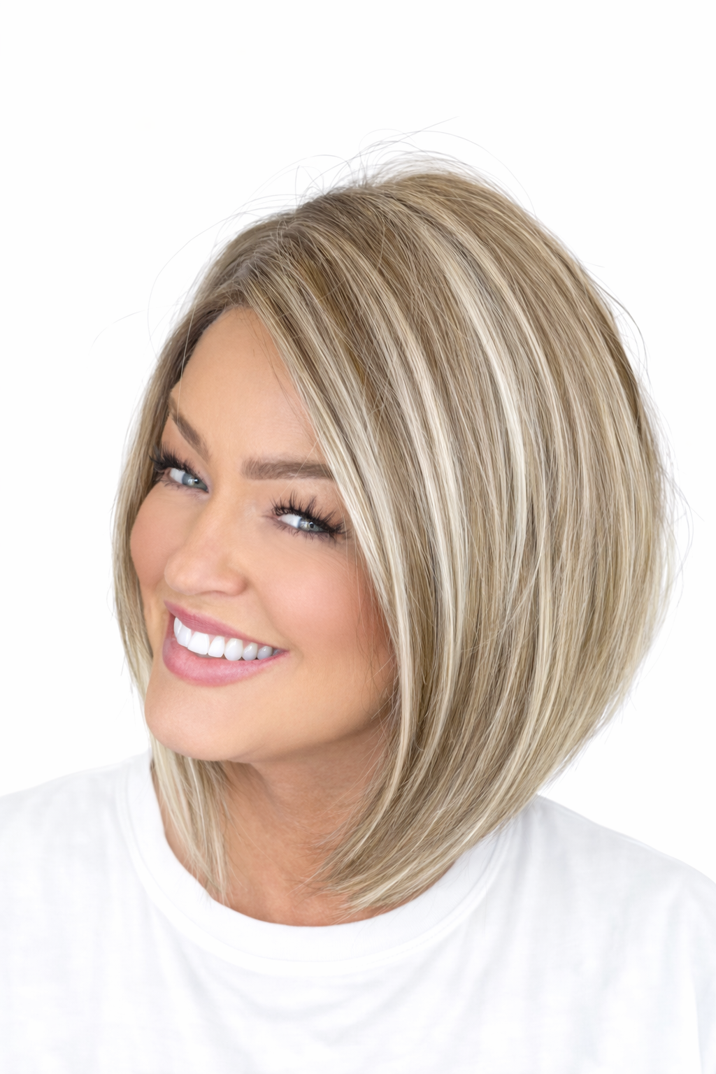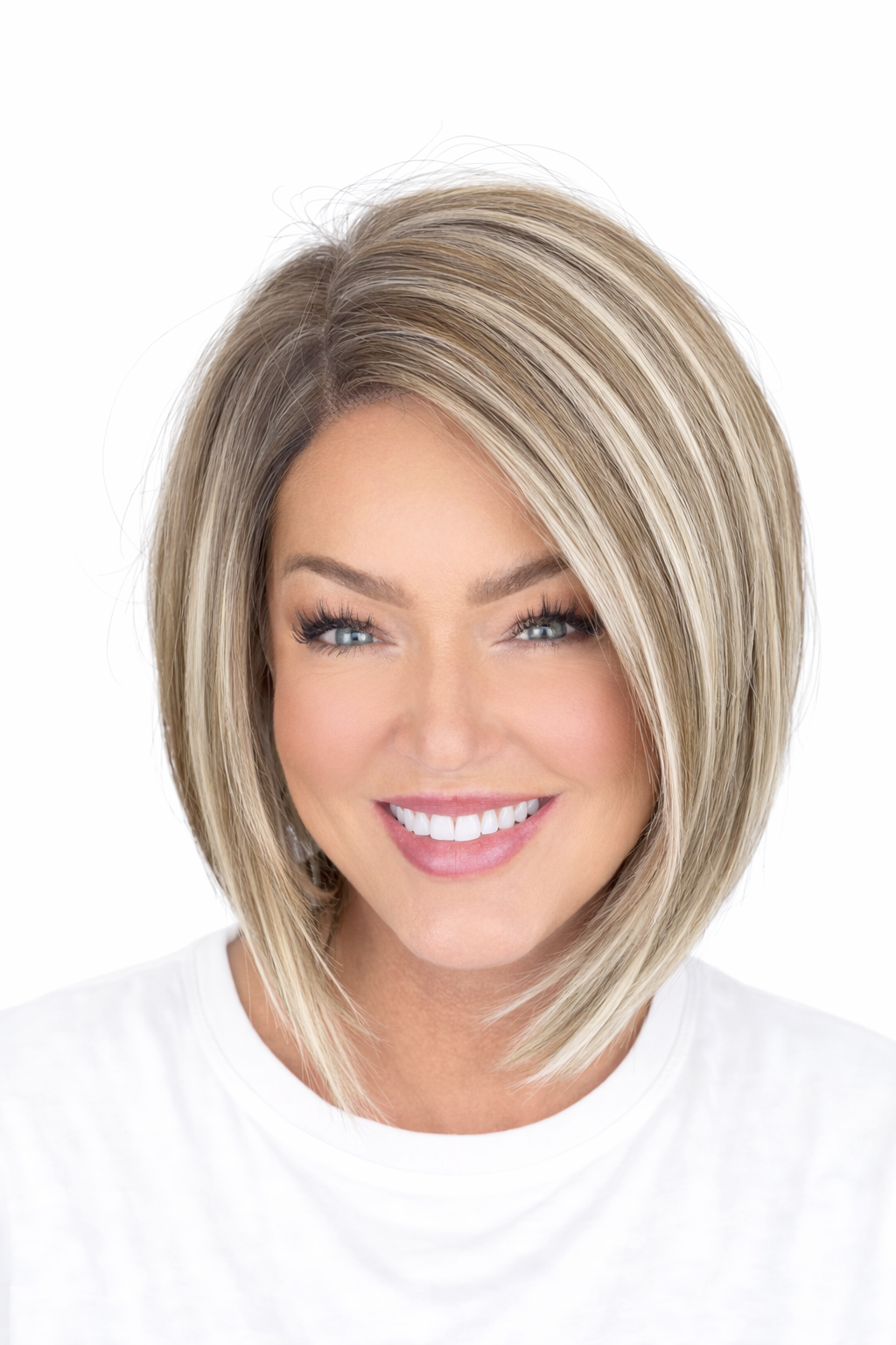 Rooted natural brunette with blonde highlights. Very much a true mixed blonde.