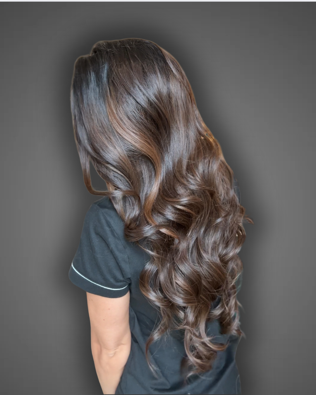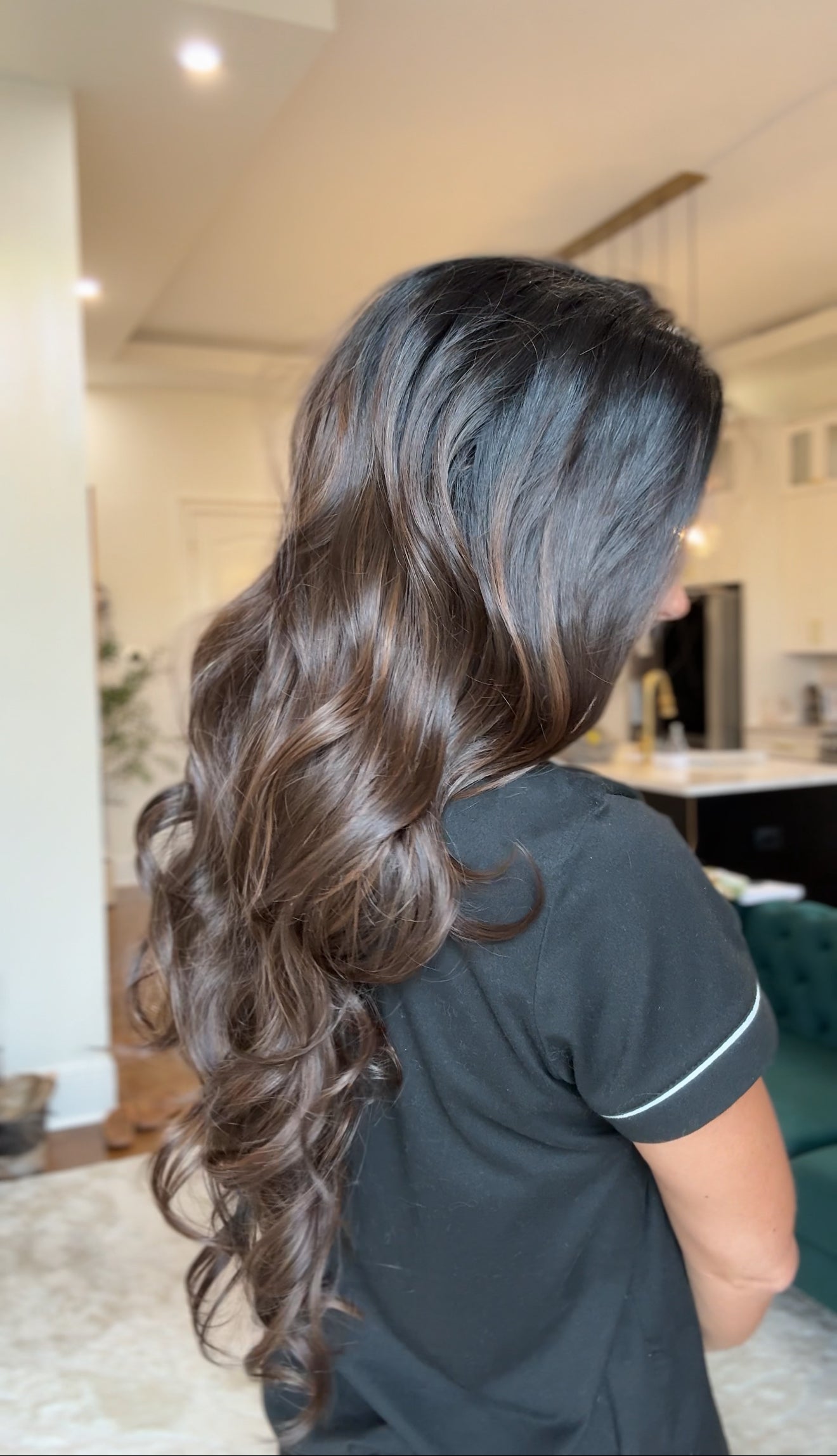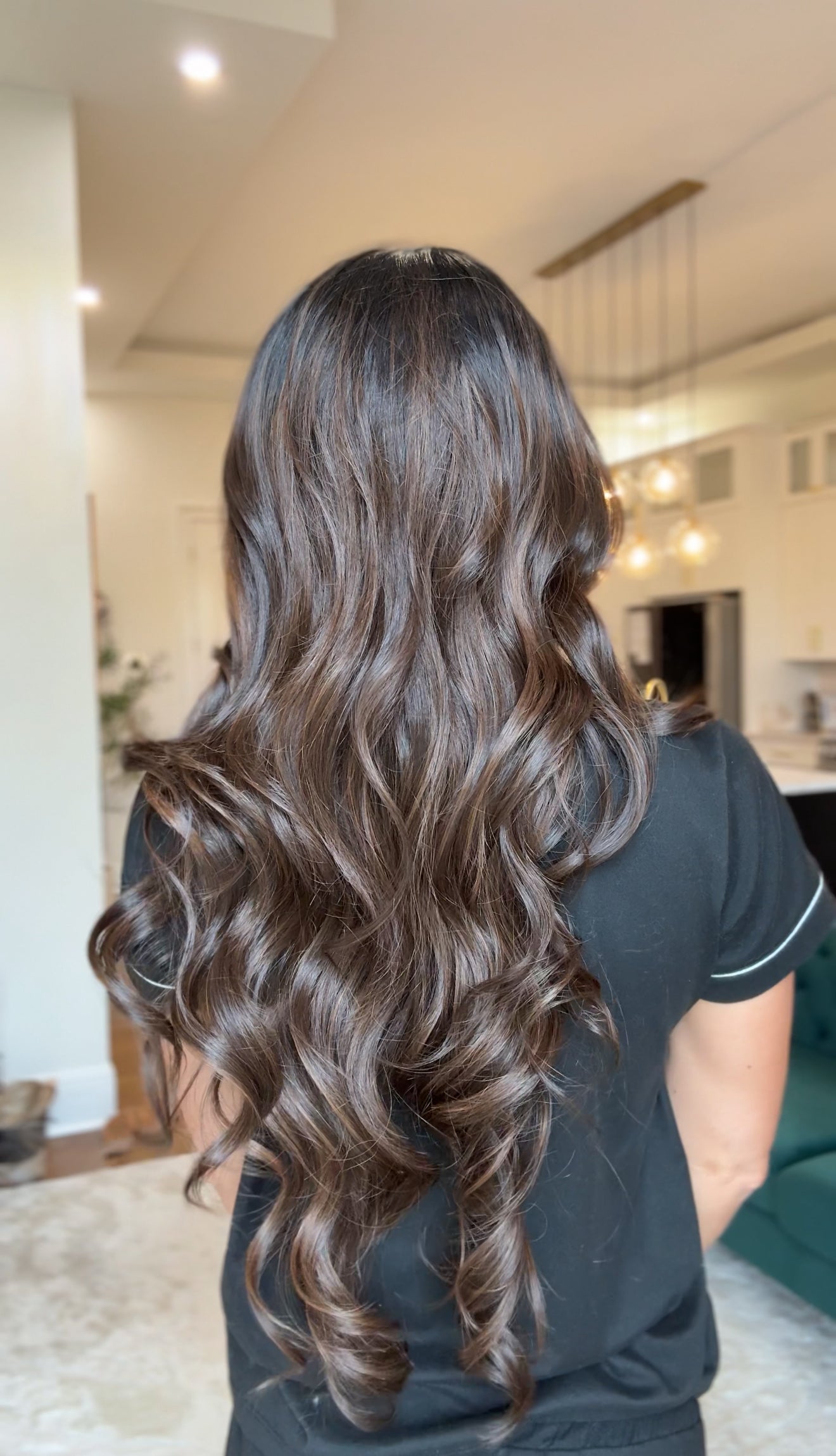 Salon Ready: Volume added, invisible layers, curtain bangs, heat combed.