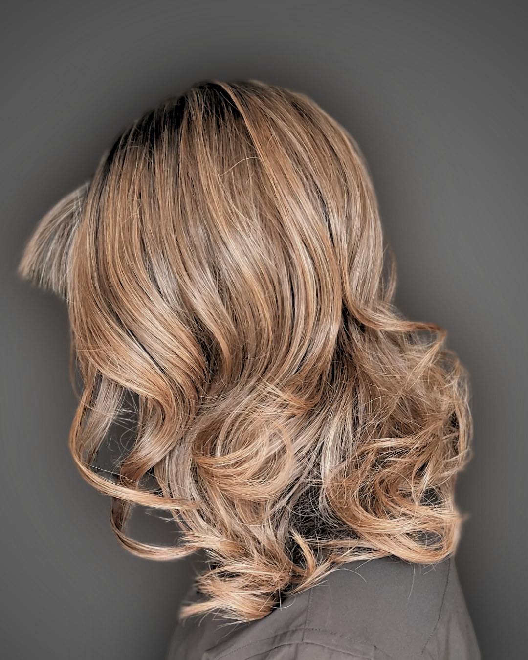 Salon Ready: Volume added, invisible layers, curtain bangs, heat combed.