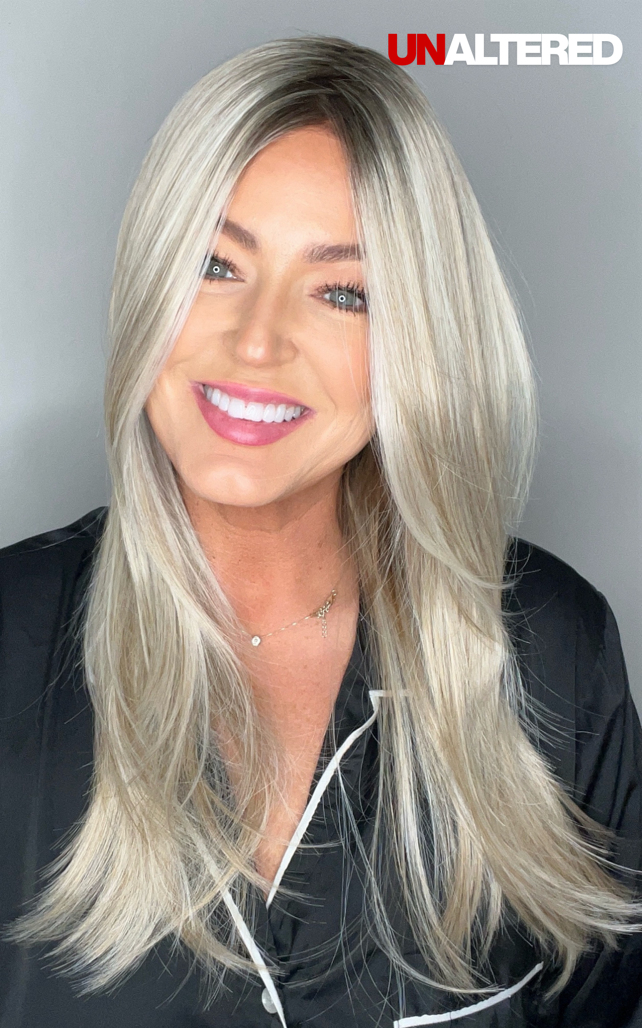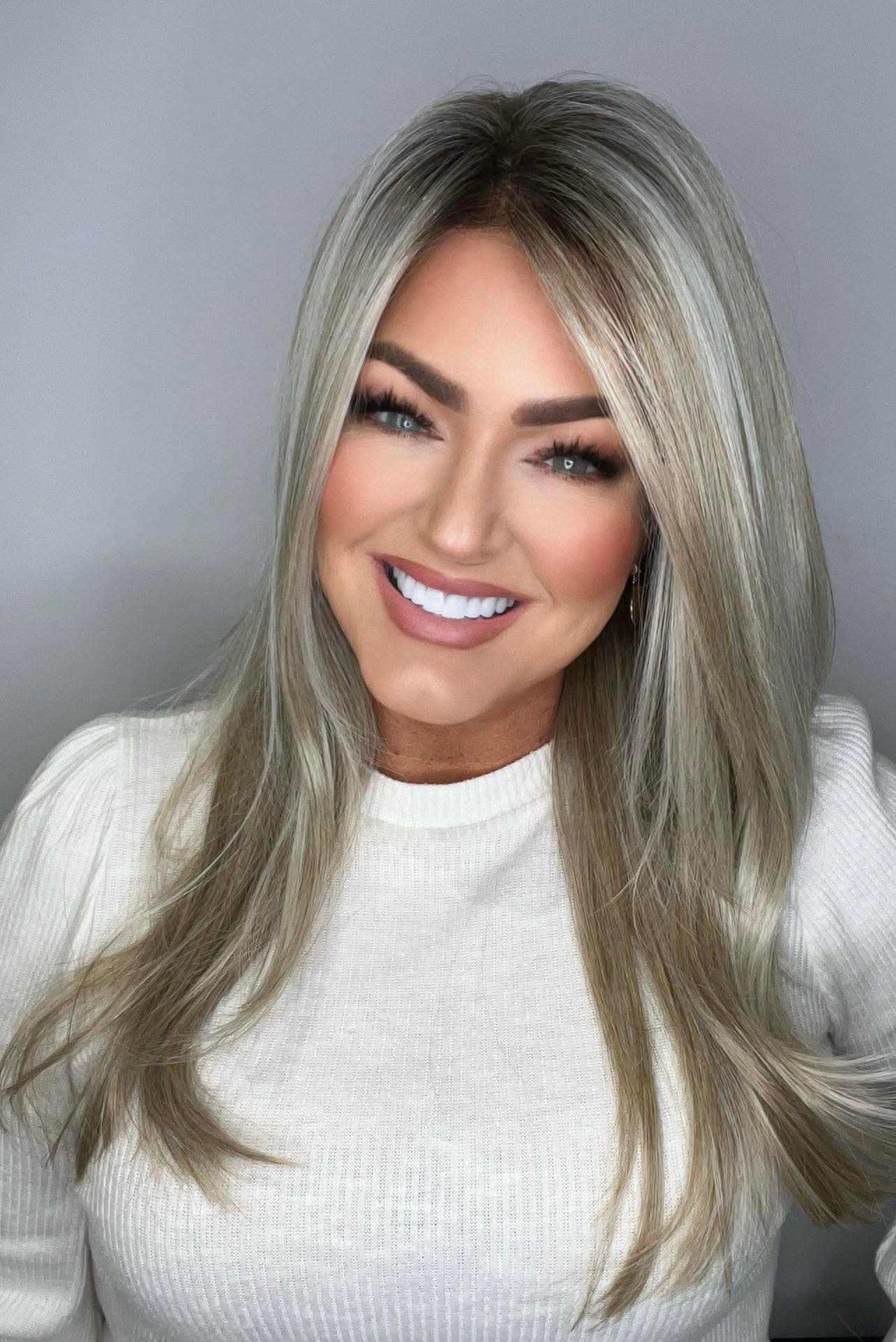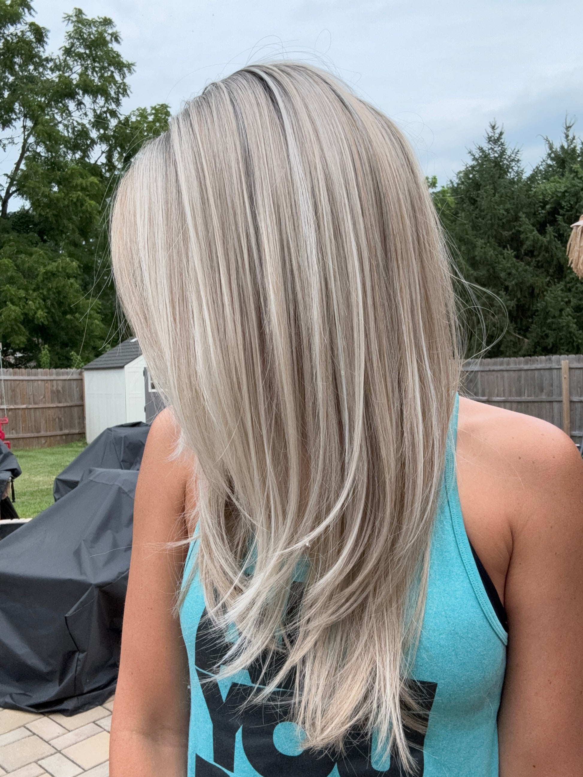 Salon Ready: Volume added, invisible layers, curtain bangs, heat combed.