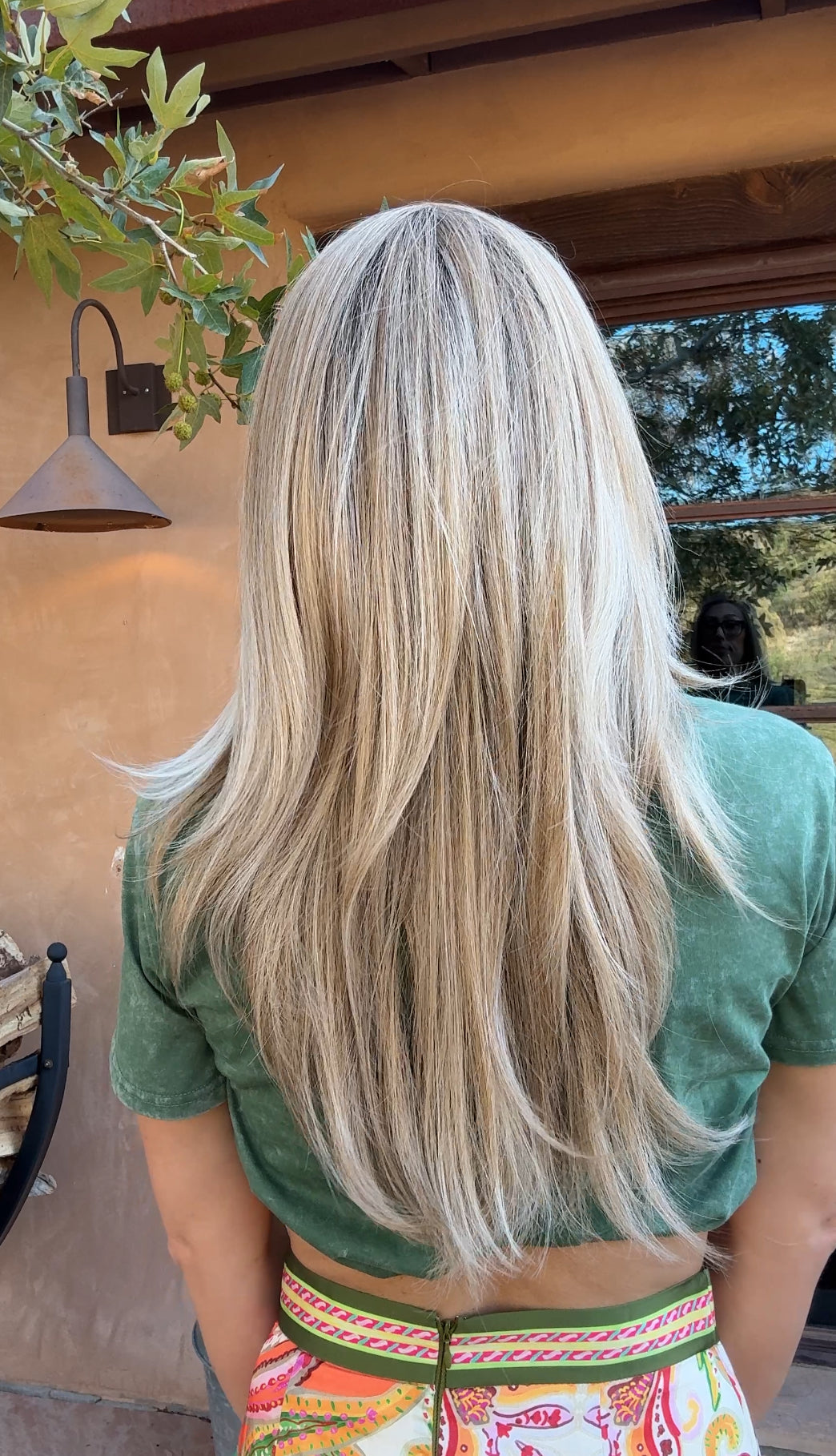Salon Ready: Volume added, invisible layers, curtain bangs, heat combed.