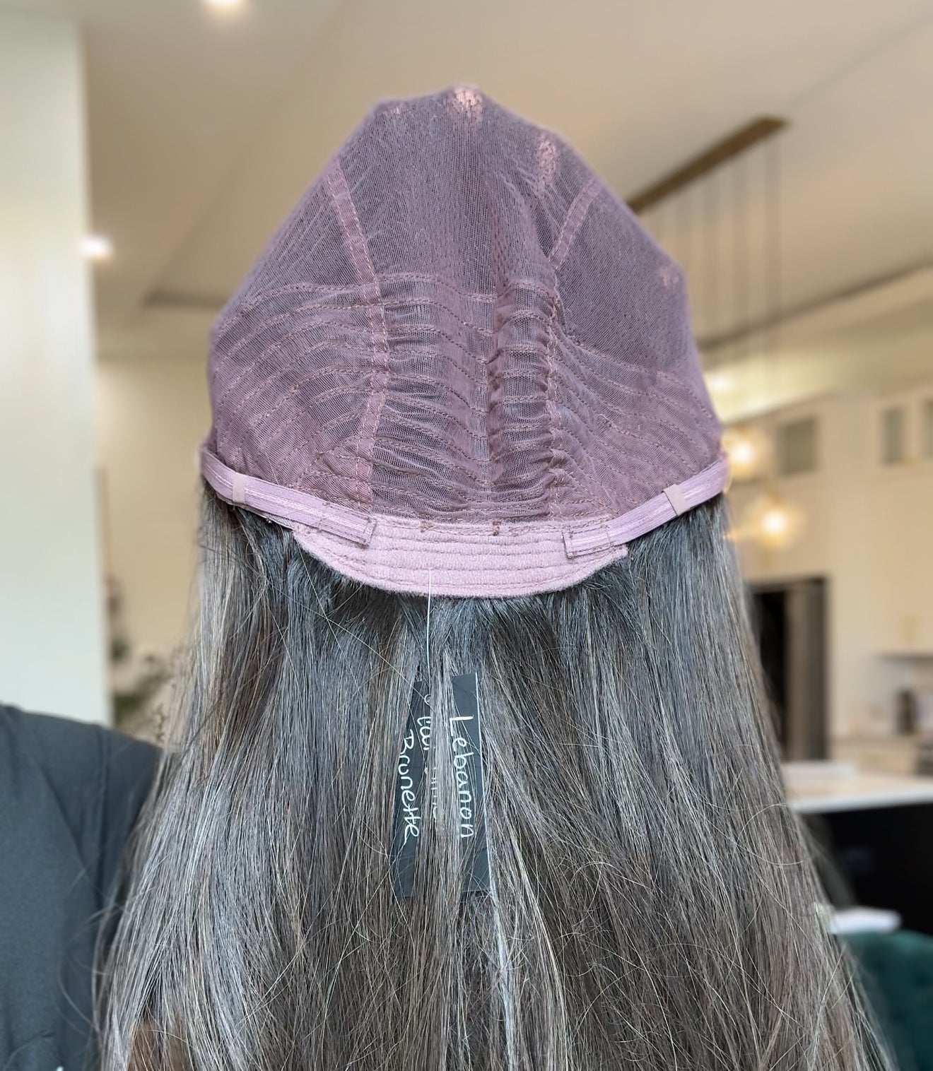 Lebanon Cool Dimensional Brunette~-16 inch nape to ends-soft face framing layers-soft layering throughout-Hand Tied Lace Front-velcro adjusters-Ear-to-Ear Full Mono/ Left side part-Silicon ear tabs-Standard cap