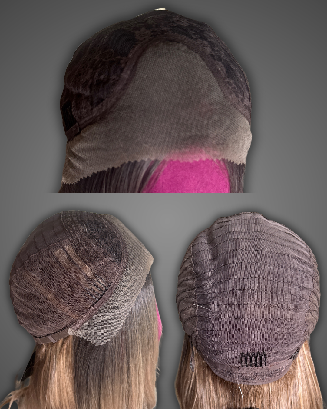 13x4 lace parting. 3 combs and adjustable straps.12 inch nape to ends. Soft body that has more of a wave towards the ends.