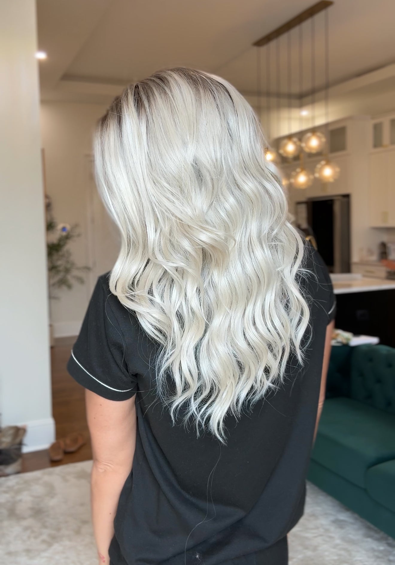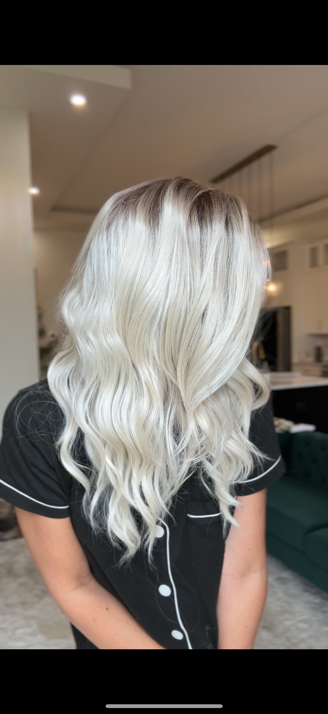 Salon Ready: Volume added, invisible layers, curtain bangs, heat combed.