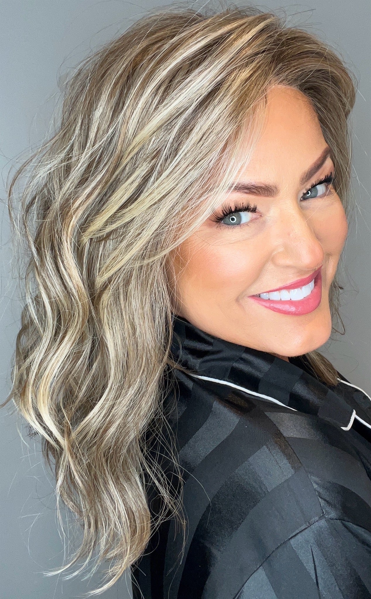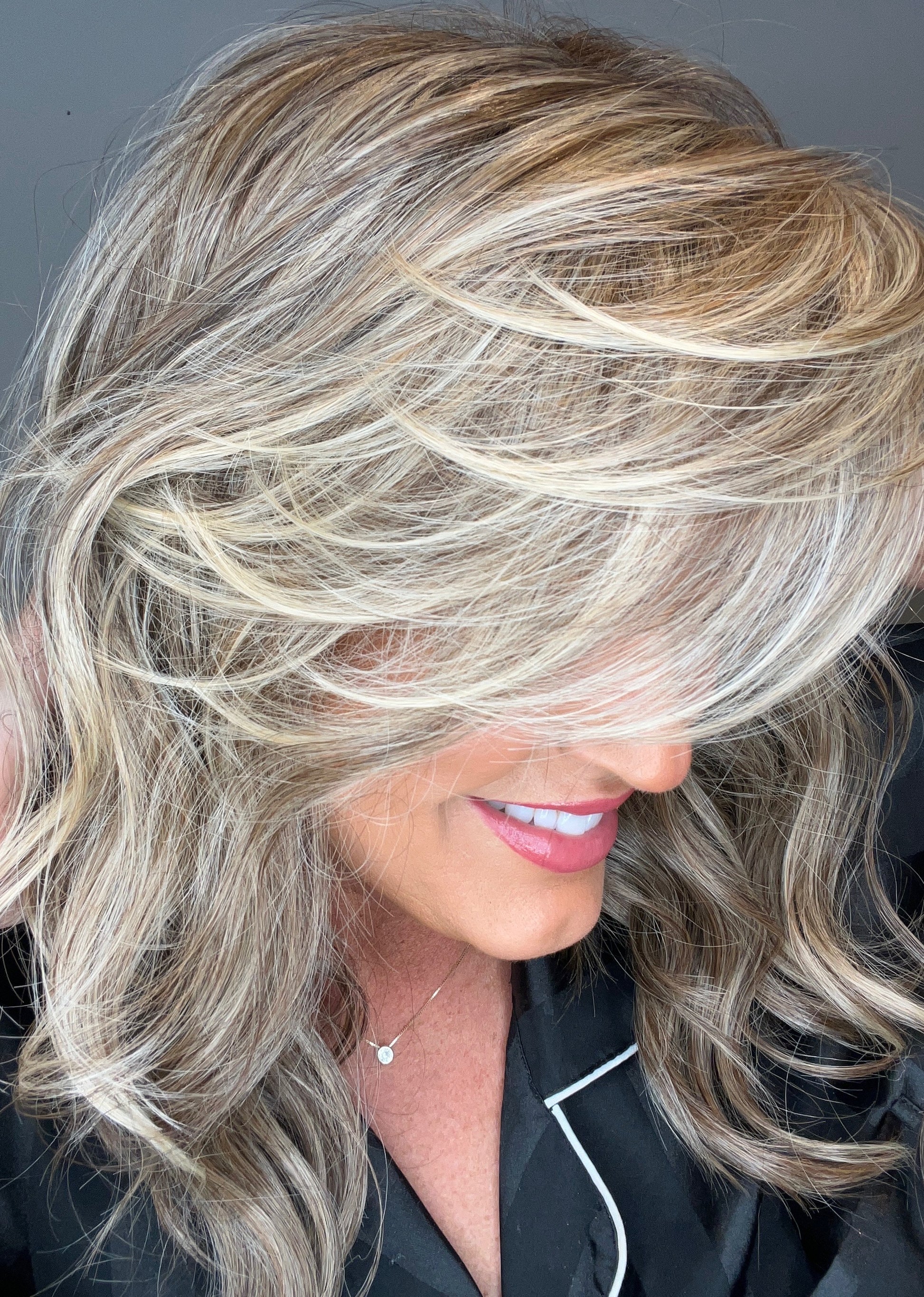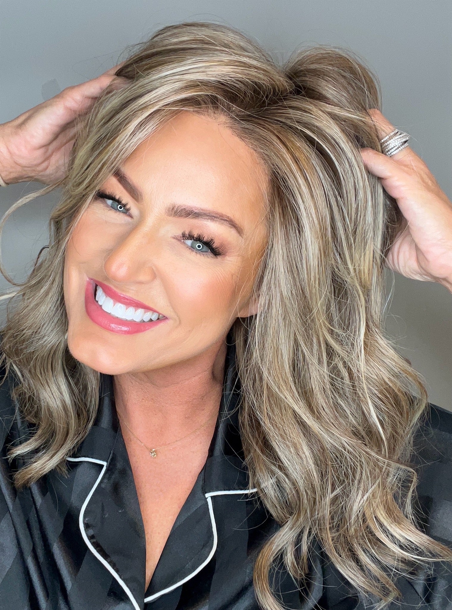 Experience a perfected look with our Loxstar wig OLIVIA, styled by expert stylist Angela Emmons. The beautiful dimensional rooted blonde and 140% density adds natural volume and versatile parting.