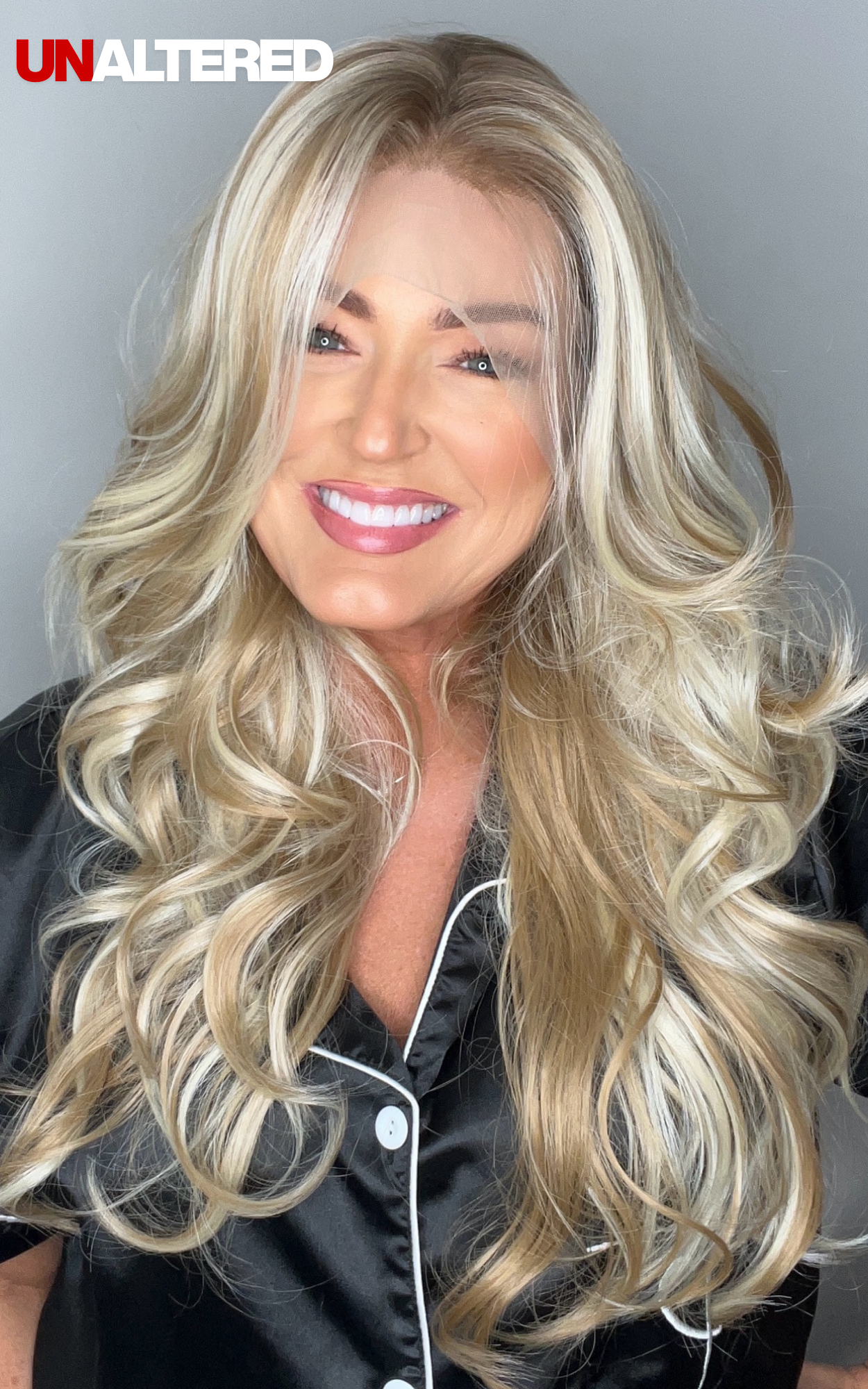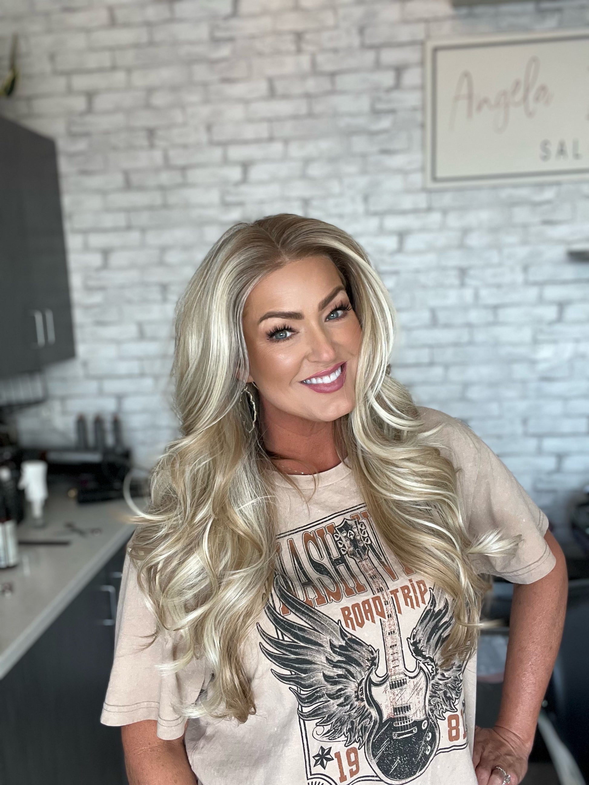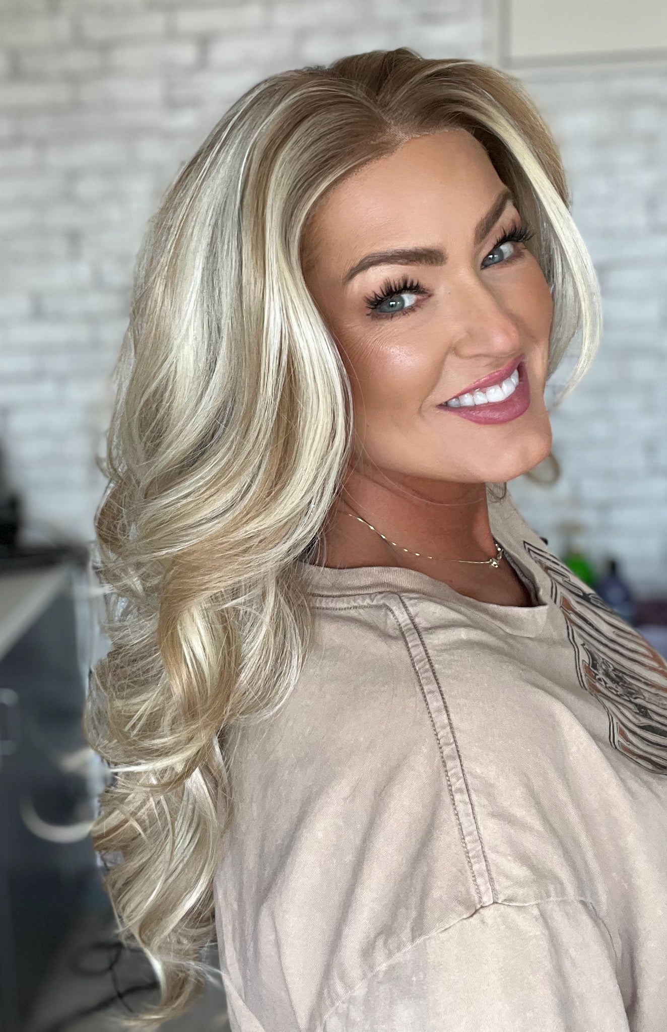 Salon Ready: Volume added, invisible layers, curtain bangs, heat combed.
