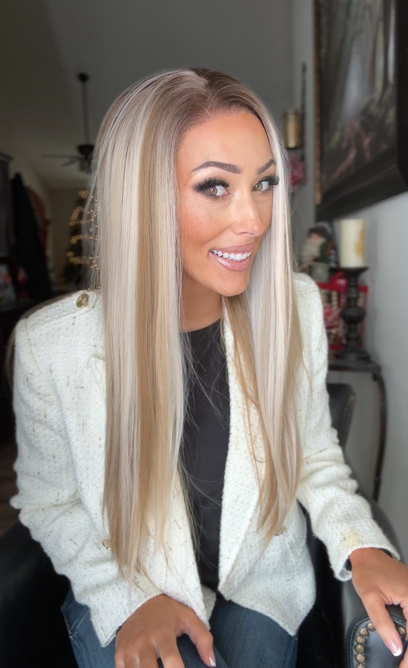 Light Blonde and dark blonde mix with a dark blonde smudge root