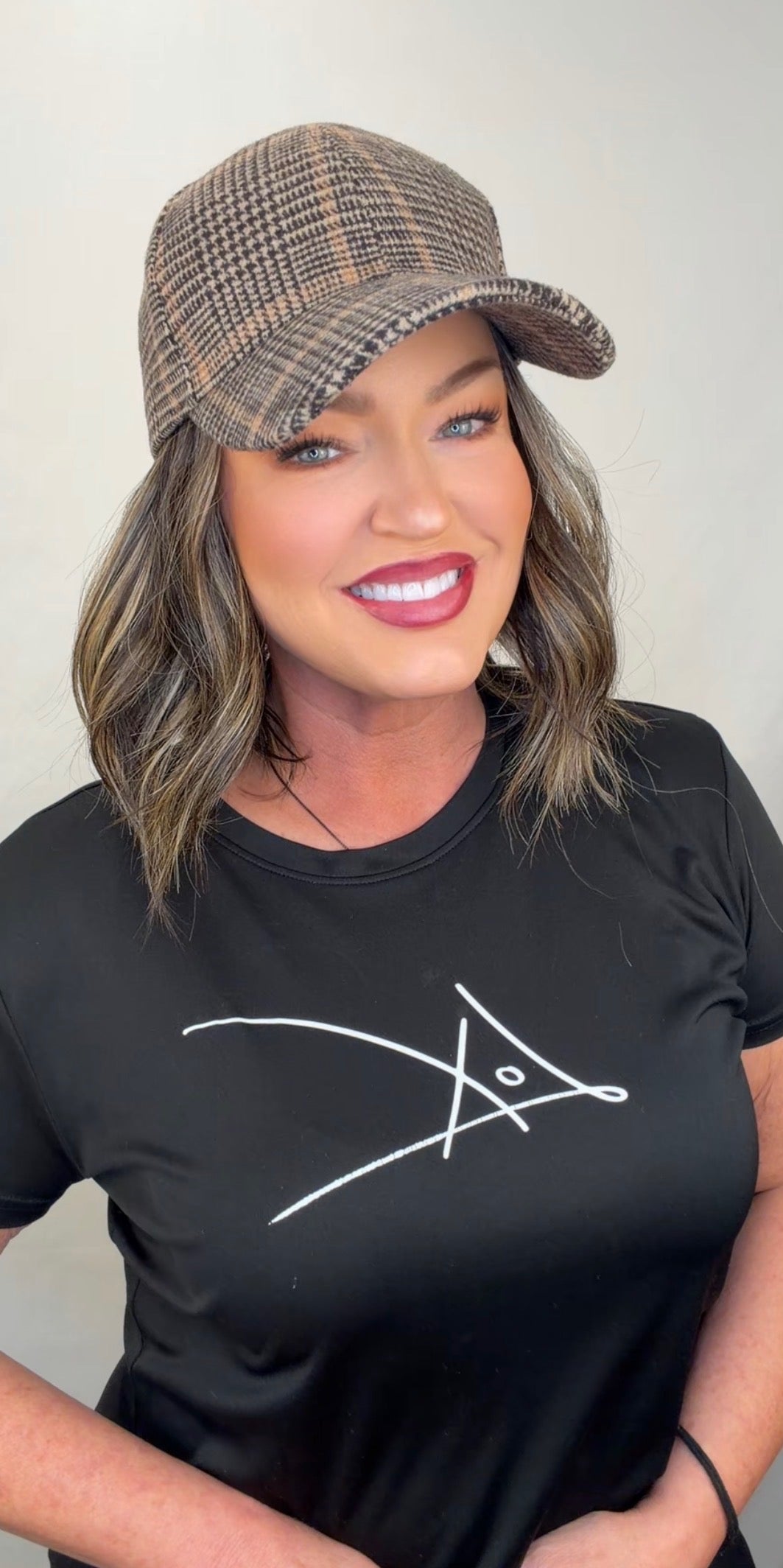 Experience an effortless look with our Topless Short Sunlit Chestnut Wig. This wig is designed to be worn with a hat or scarf covering. Tuesday is a beautiful Brunette with blonde highlights, average size open wefted cap for superior ventilation and140% density. This has a 3 combs for added security. Use your own hat, hats are not provided.